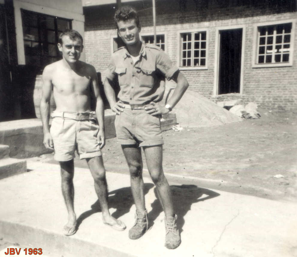 Junto à nossa camarata no Luachimo - Dundo. À esquerda, António Roque Frutuoso; à direita, Baltazar Abreu.