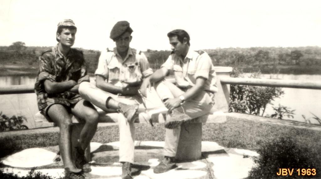 No miradouro do aquartelamento da barragem do Luachimo. À esquerda, Baltazar Abreu; ao centro, Armando Casimiro Martins; à direita, Joaquim Alberto Mateus.