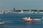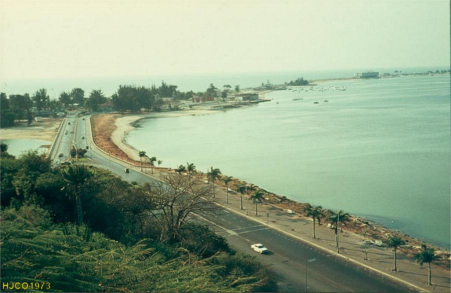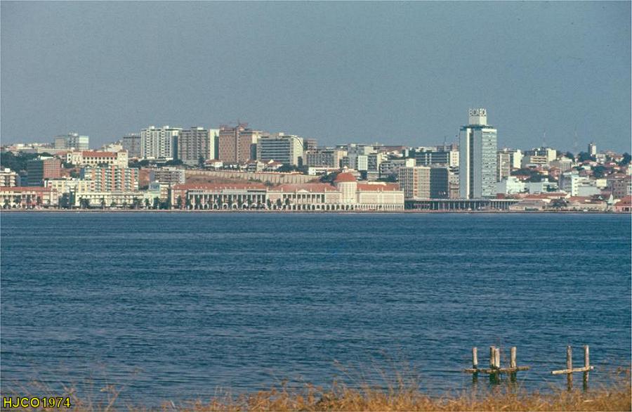 Aspecto de Luanda como se vê da ilha, tendo à esquerda o porto comercial e a Alfândega. Imagem obtida com teleobjectiva.