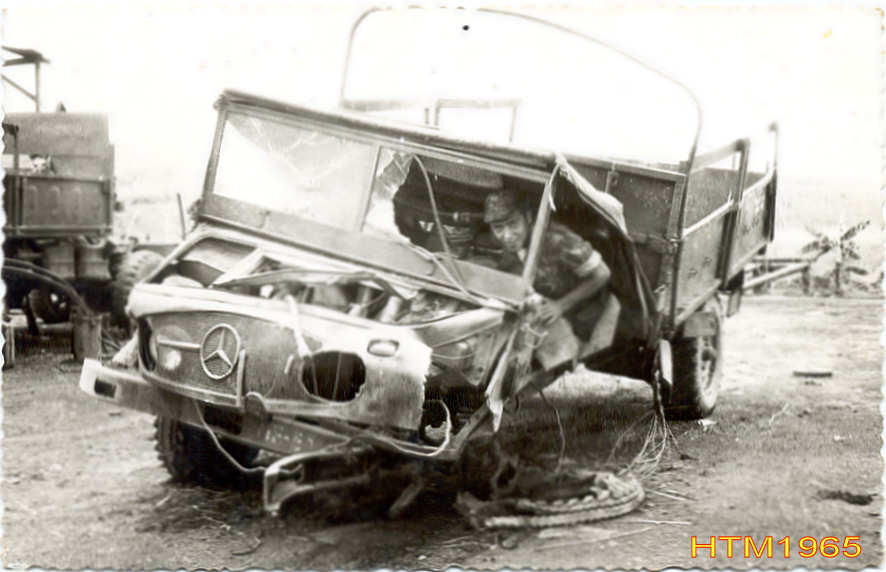 H. T. M. numa viatura destruída após accionamento de uma mina em Maio de 1966.
