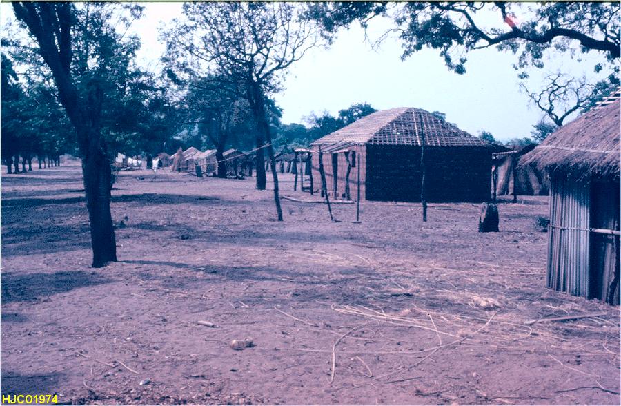 Aspecto da Sanzala de Mangando, sendo de destacar o perfeito ordenamento rectilíneo da cubatas. (Slide refª 1000).