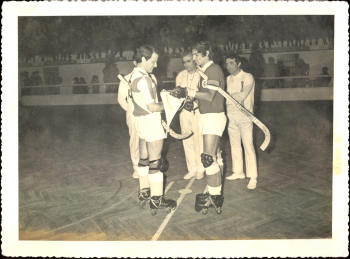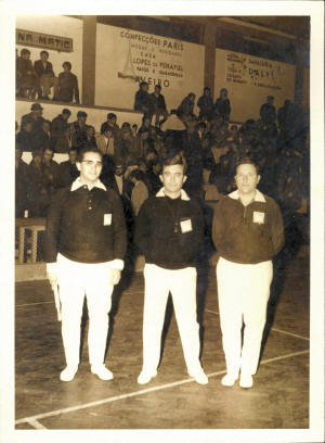 Durante um jogo na década de 1960. Da esquerda para a direita: Manuel Faria, ??? e Vitorino Gonçalves. Foto 18x24 cm.