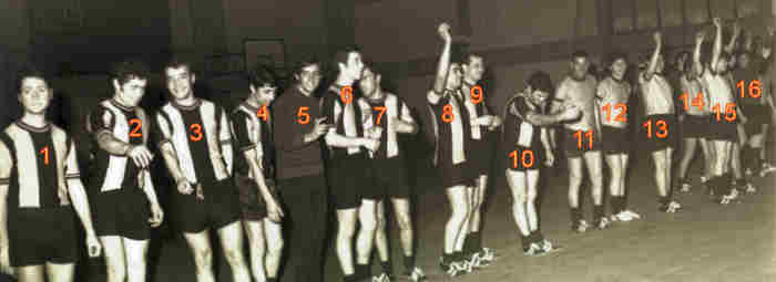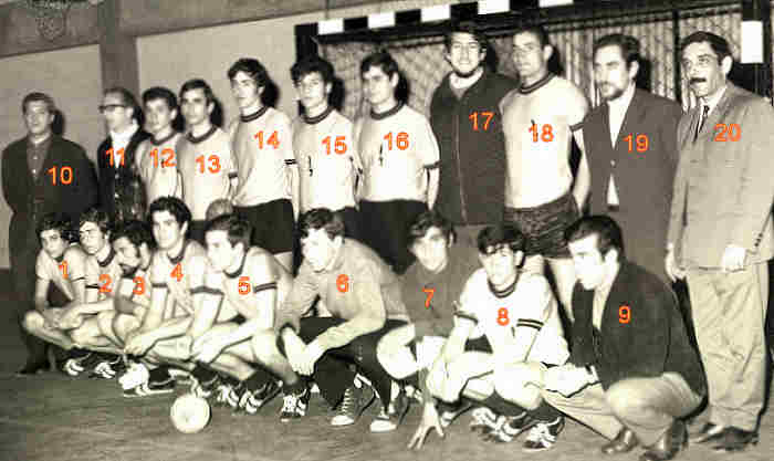 Jogadores de andebol: 17.Pimentel; 18.Leal; 19.???; 20.Neves, |