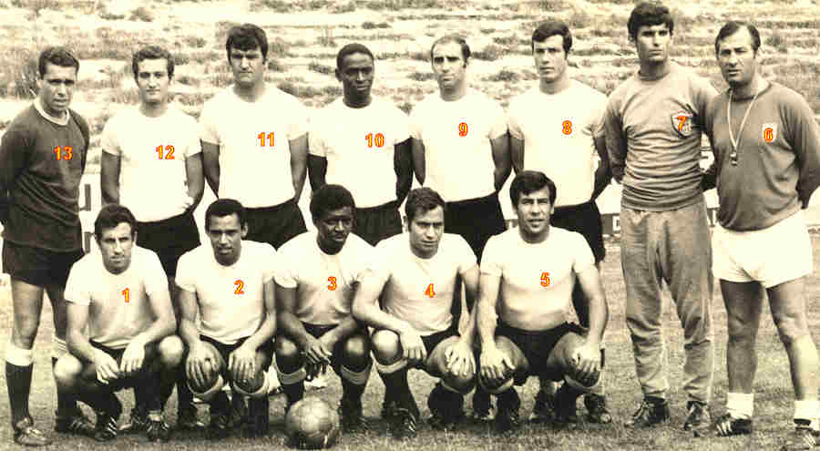Em cima: Soares; César; Jerónimo; Almeida; Abdul; Marçal. |