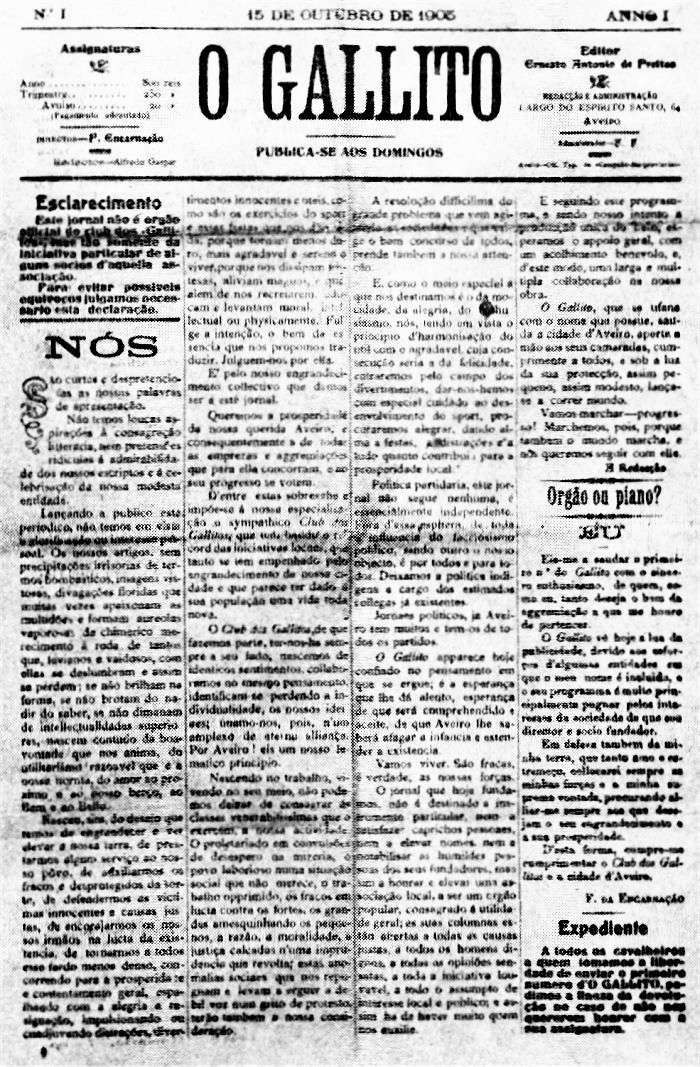Galito – Jornal que apareceu em 1905, impresso nas Oficinas do Campeão