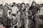 Grupo de militares da Companhia de Cavalaria 1 junto ao memorial da Companhia de Caçadores 2334. Da esquerda para a direita - Em cima: ???; ???; ???; ???. Em baixo: ???.