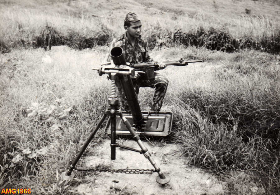 Junto de um lança-morteiros, na