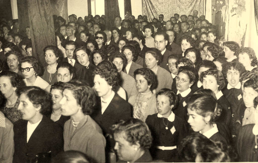 Da assistência, entre muitos outros e da frente para trás, reconhecem-se: Esmeralda Leitão, Lurdes Caldeira, Sérgio Brito; Celeste Soares (de óculos); Fernanda Monteiro, ?, Maria Justina Guterres, Maria Emília Costa, João Lagoa, Lurdes Silva, Rosa Lagoa, Deolinda Quitéria Jorge, João Monteiro, Fernanda Beja, etc., etc.