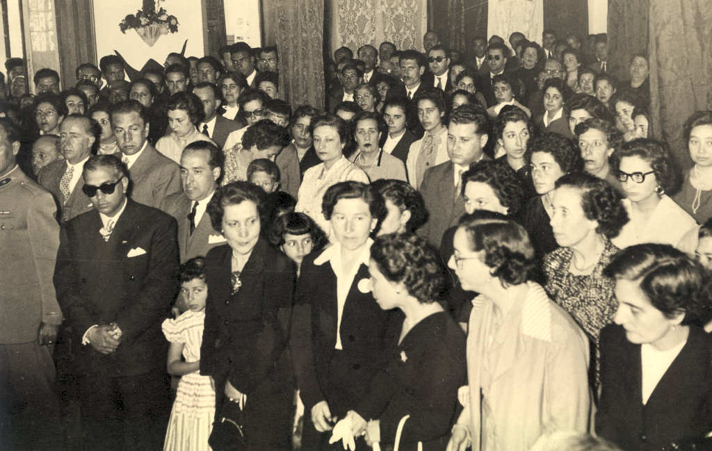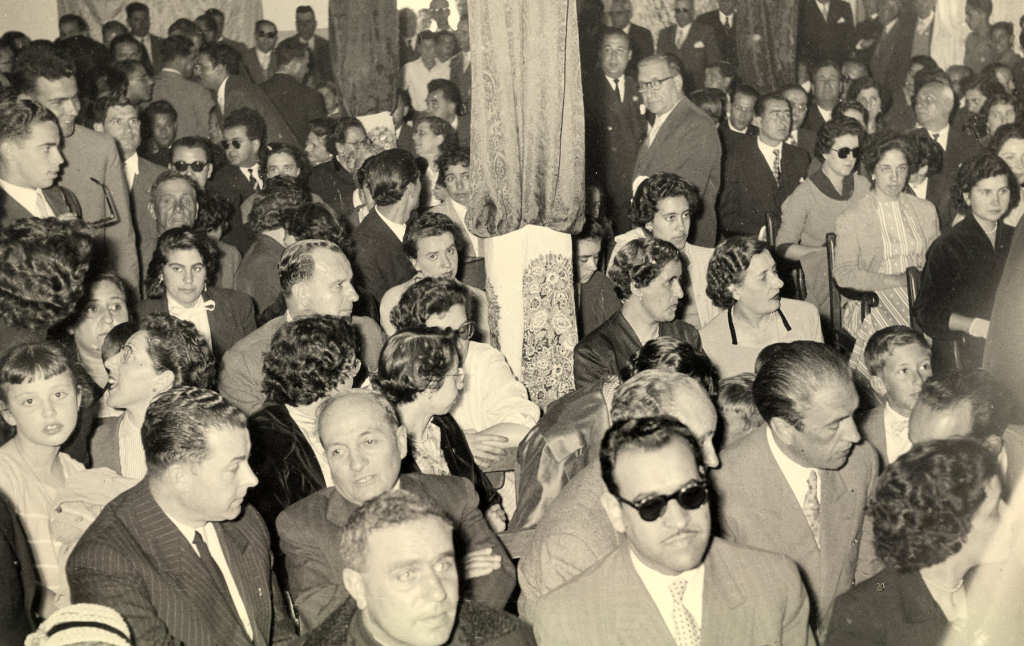 20. Em primeiro plano apenas se reconhece do lado esq o Pde José Elísio Matias Mendes. Mais atrás já na 4ª fila, o Dr. Luís Brites, ?, Fernanda Brandão Alves (de preto), Apolinária Carapeto (tia), Cacilda Lagoa, Marília Martins, Regina Dias (de óculos escuros) e ainda António Varela Pinto (pai), Ramiro Ferreira Mendes, Manuel Joaquim Alves. Do lado esquerdo reconhecem-se ainda Arnaldo Pais, Luís Dinis dos Pinheiros, Manuel Morgado, Albertina Monteiro, etc., etc.