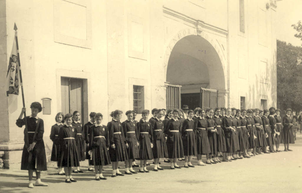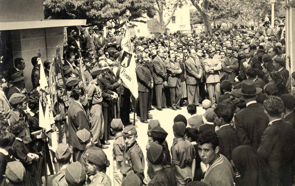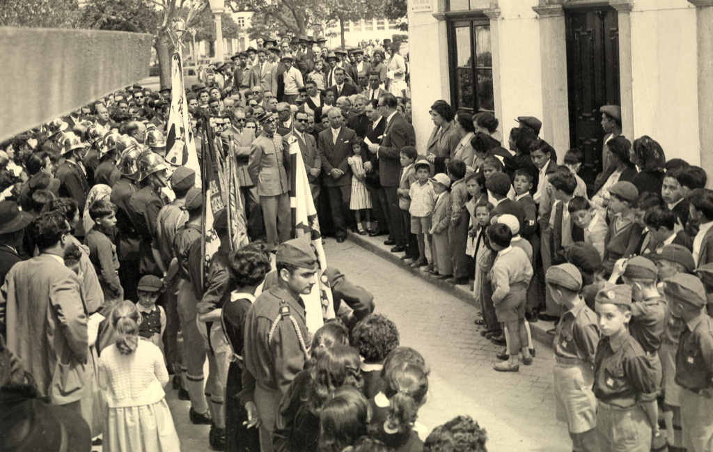 26. Depois da sessão solene, desfile no Cardal dos meninos e meninas da Mocidade Portuguesa para a inauguração da Rua Capitão Tavares Dias. Entre muitos, destacam-se à frente (?) Armando Gonçalves Gameiro e Luís Mineiro.