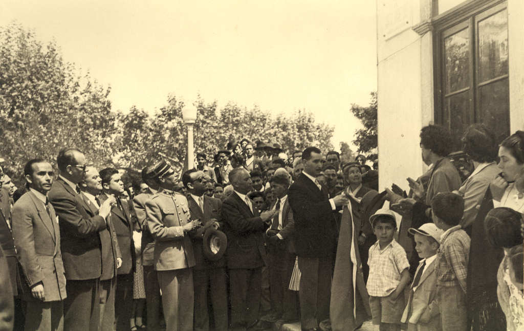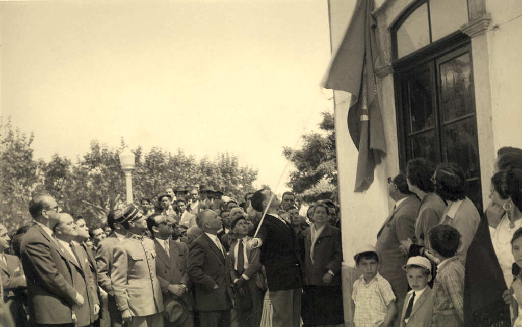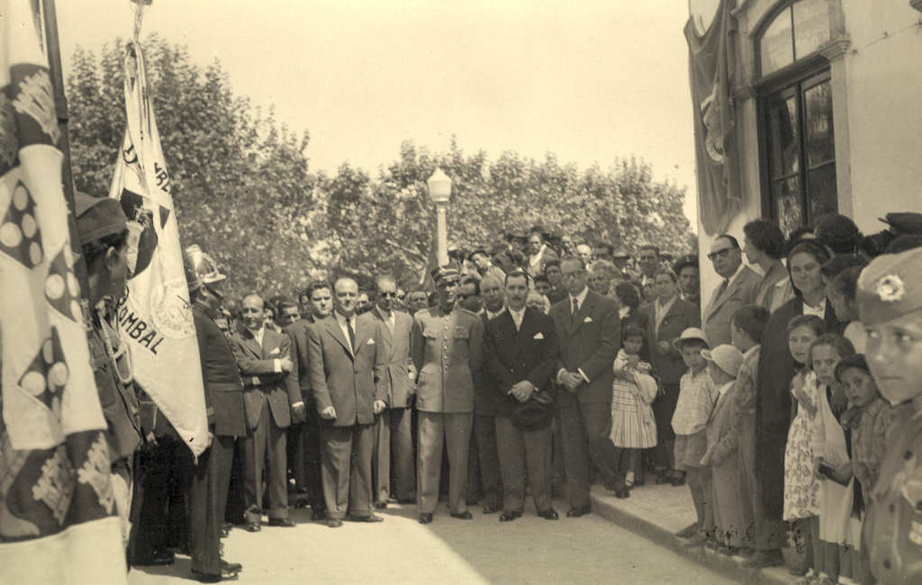 42. Fim da cerimónia do descerramento da placa. Lucena, tenente da GNR, Dr. Simões Rocha (Presidente da Câmara e Dr. Saul.