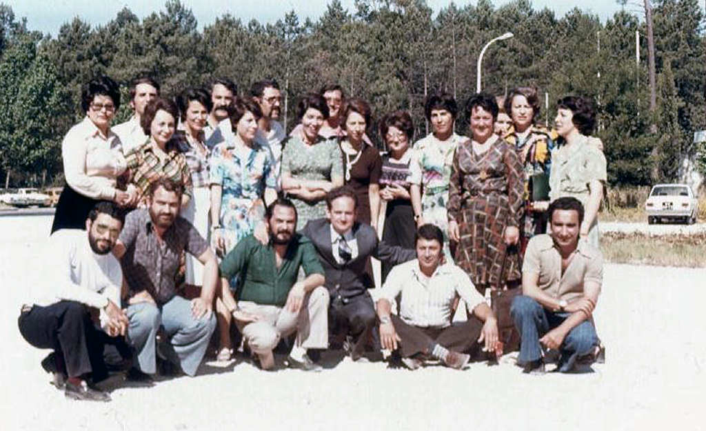 cabelo comprido), Mário Portela e Arminda e Elisabete Campos com a