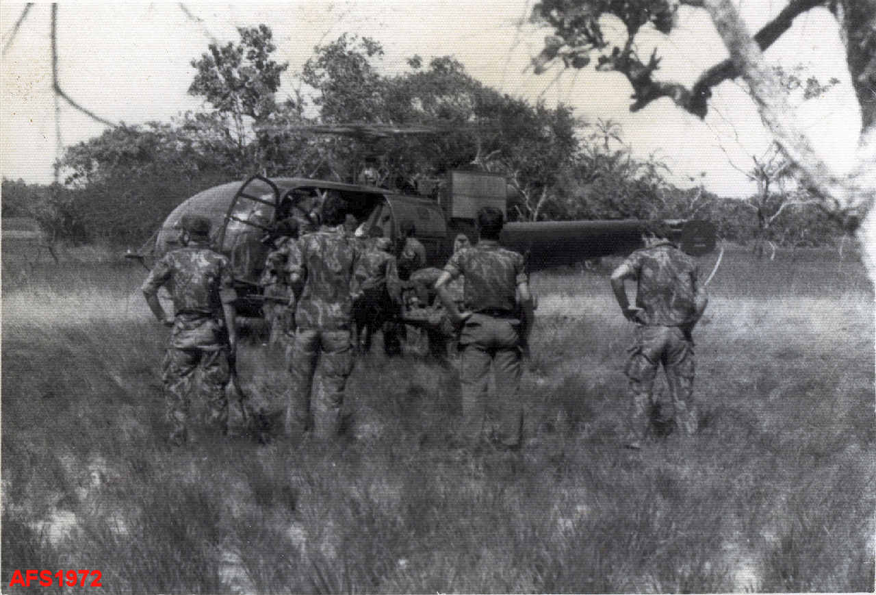 Preparação para evacuação de um ferido num ataque a elementos da Companhia de Caçadores 3472.