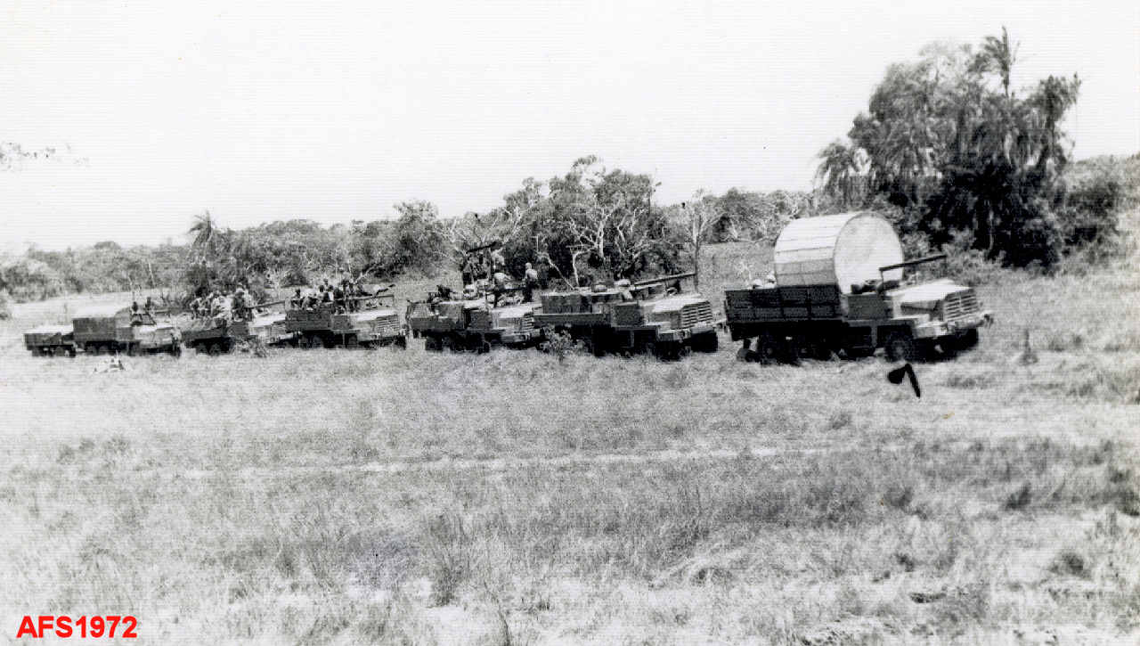 Coluna militar a Companhia de Caçadores 3472 para uma operação na zona.