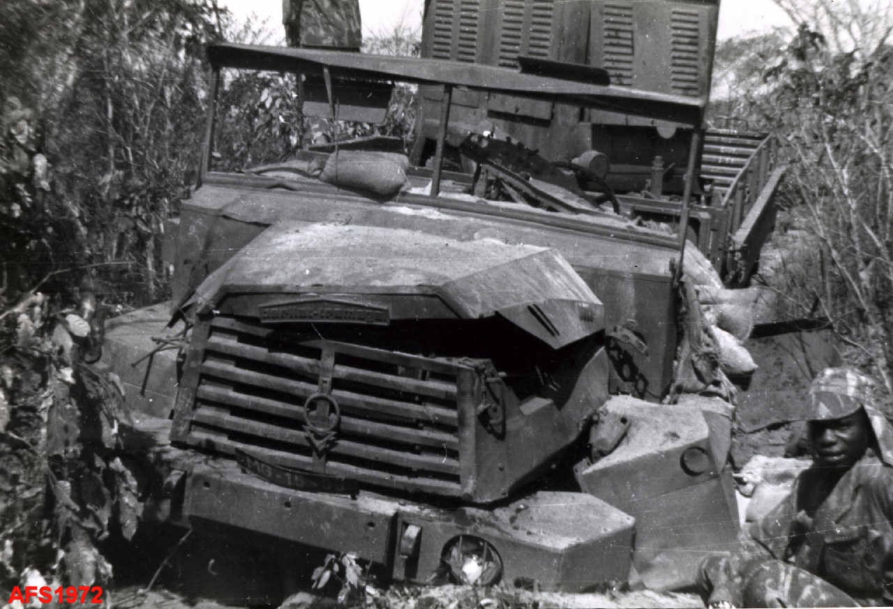 Outro aspecto da viatura destruída por uma mina na zona de Pundanhar.