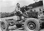sentado numa viatura em reparação.