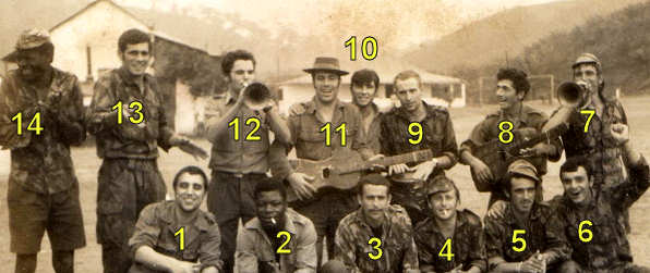 Elementos da Companhia de Caçadores 3386 que foram reforçar o grupo colocado no Quixico em Agosto de 1971. NOMES:  1.Boaventura: 2.Zeca: 3.José Luís (Dr. Pílulas): 4.Cabo Lopes: 5.Leitão: 6.Guedes: 7.???: 8.???: 9.???: 10.???: 11.???: 12.???.