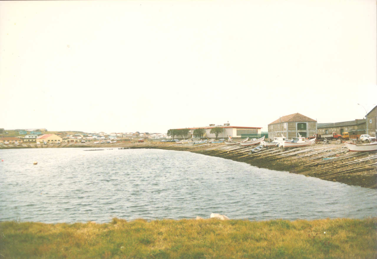 Pequena baía do porto de Saint-Pierre, vendo-se as rampas de madeira