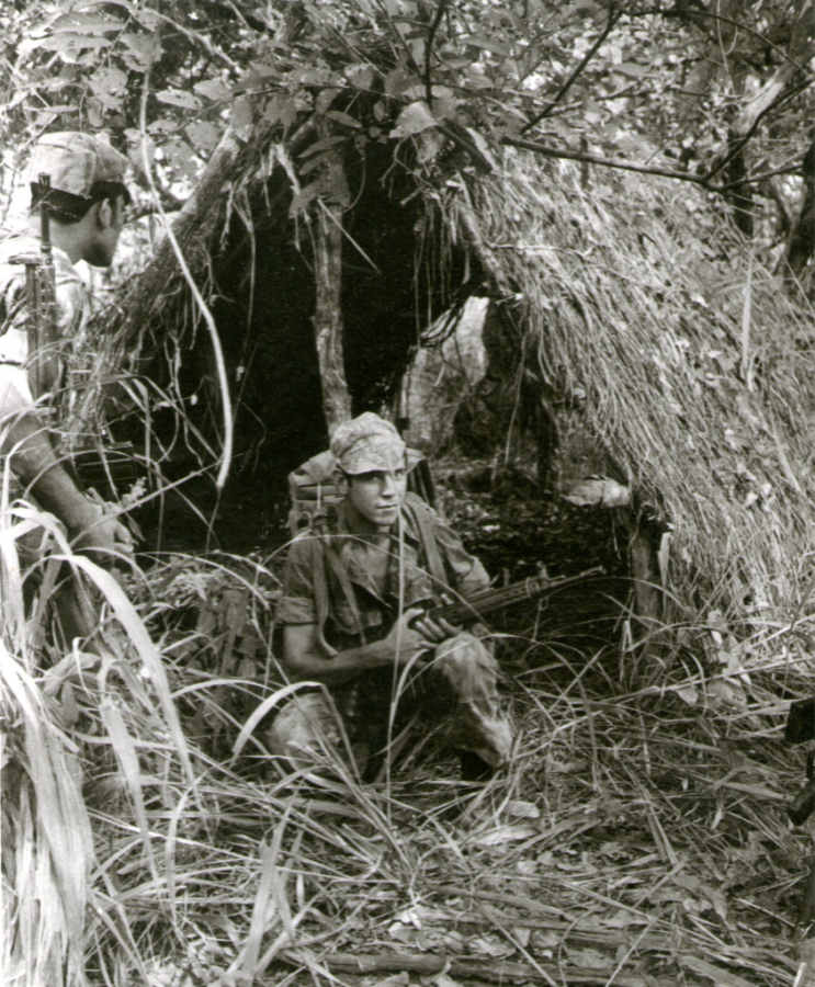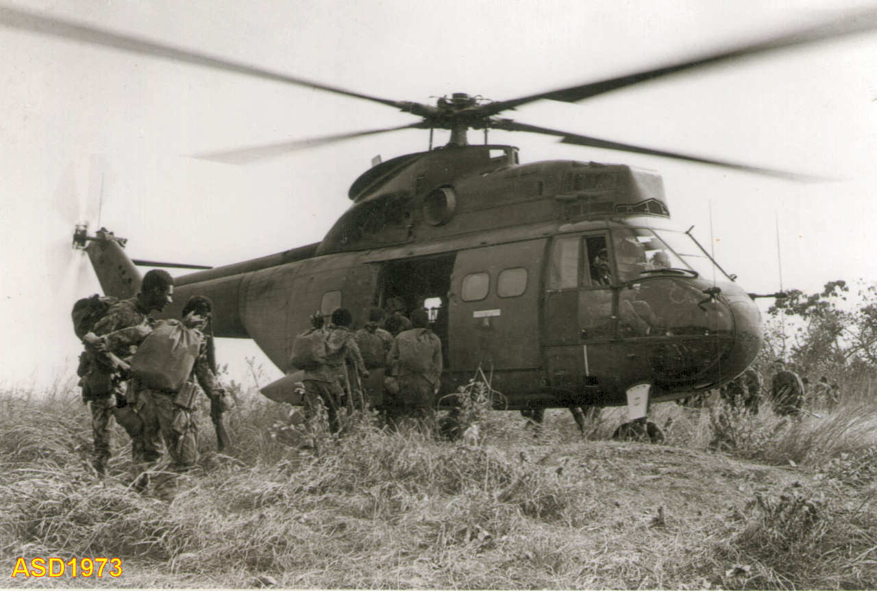 Operação na mata do Luaia, em Toto. Junto a uma cubata do inimigo ano em 1973.