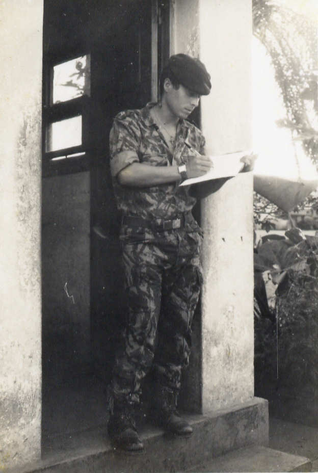 Durante uma operação à mata do Luaia na região de Toto, acompanhados de um guia que fazia parte do inimigo e se entregou às nossas tropas. na imagem, Abel Dias, da Companhia de Caçadores 3437.