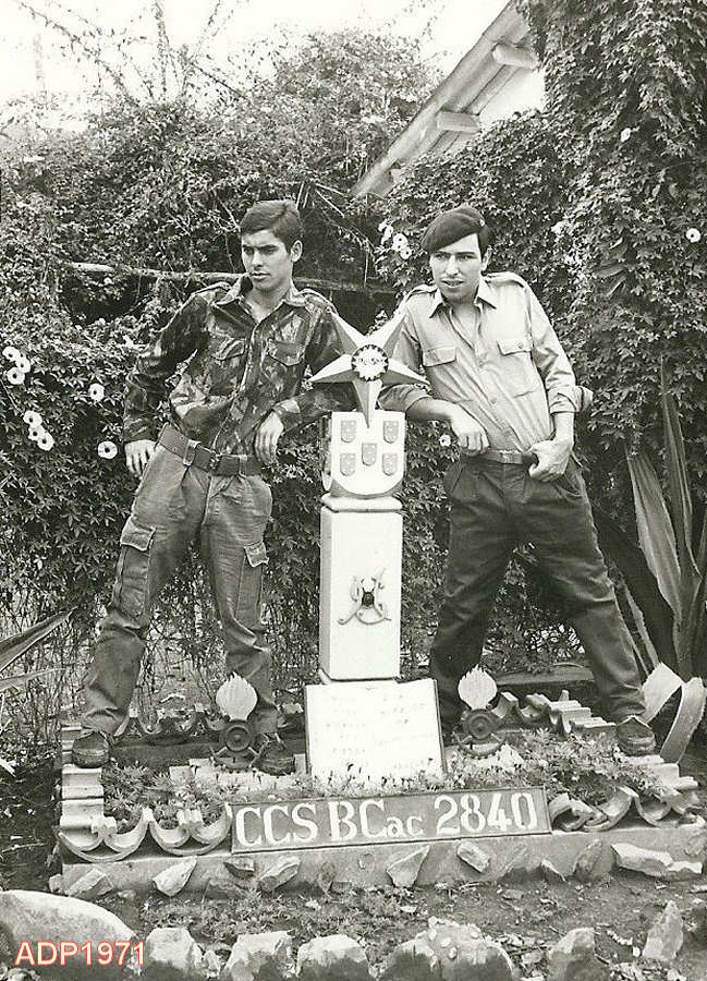 Em Vale do Loge em 1972, junto ao memorial da Companhia de Caçadores 3435 do Batalhão de Caçadores 3855. Da esquerda para a direita: ???, ???, ???, ??? e ???.