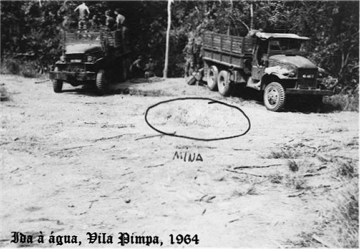 Zona assinalada com uma mina, no percurso para a ida ao local de abastecimento de água para "Vila Pimpa".