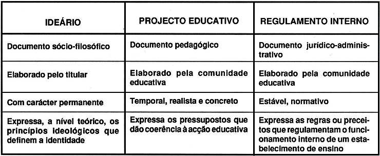 ideário educativo, projecto educativo, regulamento interno e plano anual
