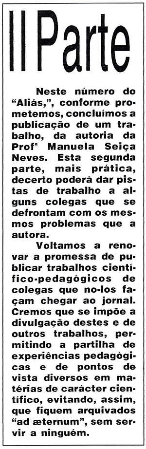 trabalho, da autoria da Prof.ª Manuela Seiça Neves. Esta segunda parte,