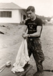 no meio de cafeeiros, na fazenda Maria Celeste.