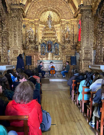 Num segundo momento, convidou os alunos a assistir a um ensaio do trio de música de câmara “Ars Ad Hoc”, na Igreja do Convento de S. João Evangelista (Igreja das Carmelitas), comentada não só pela Diana Ferreira como também pelos próprios músicos.