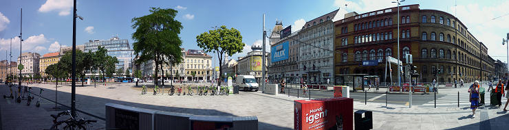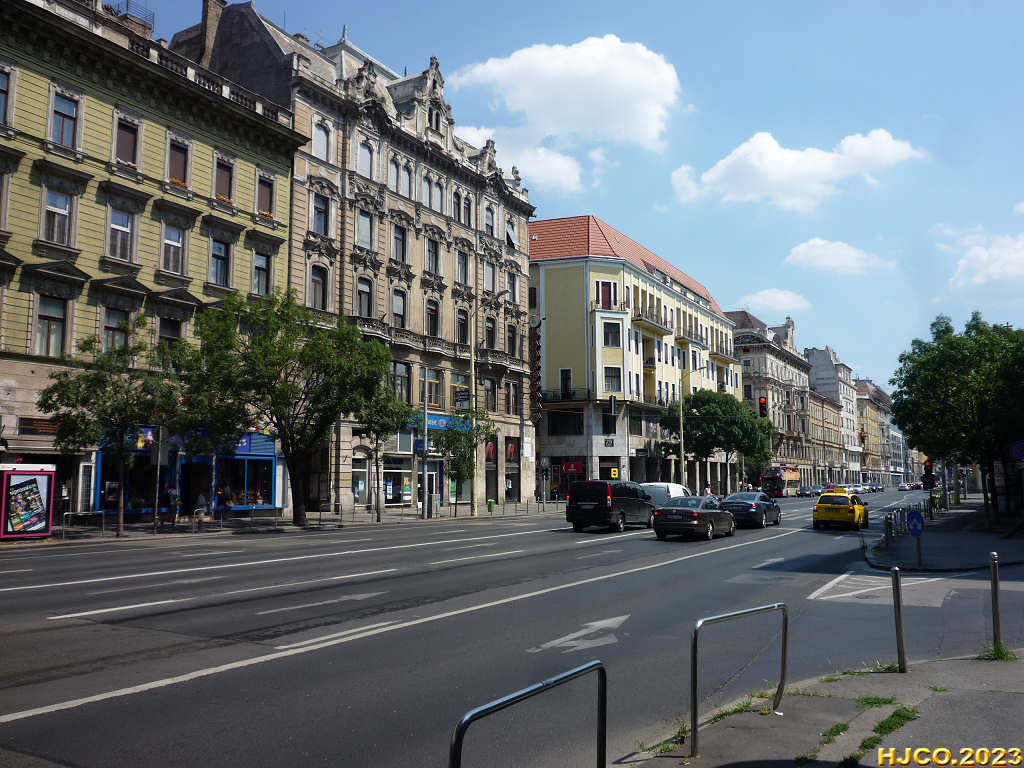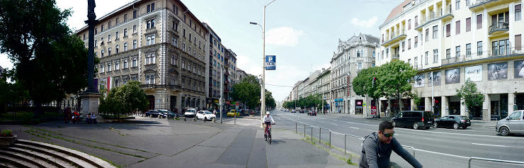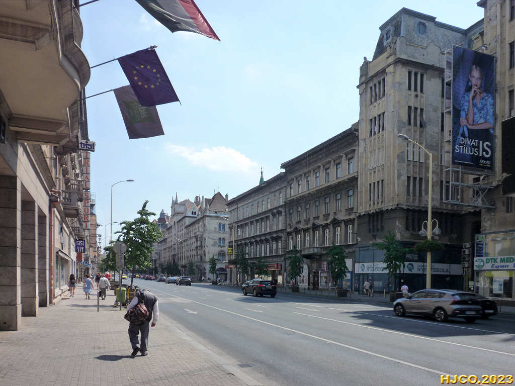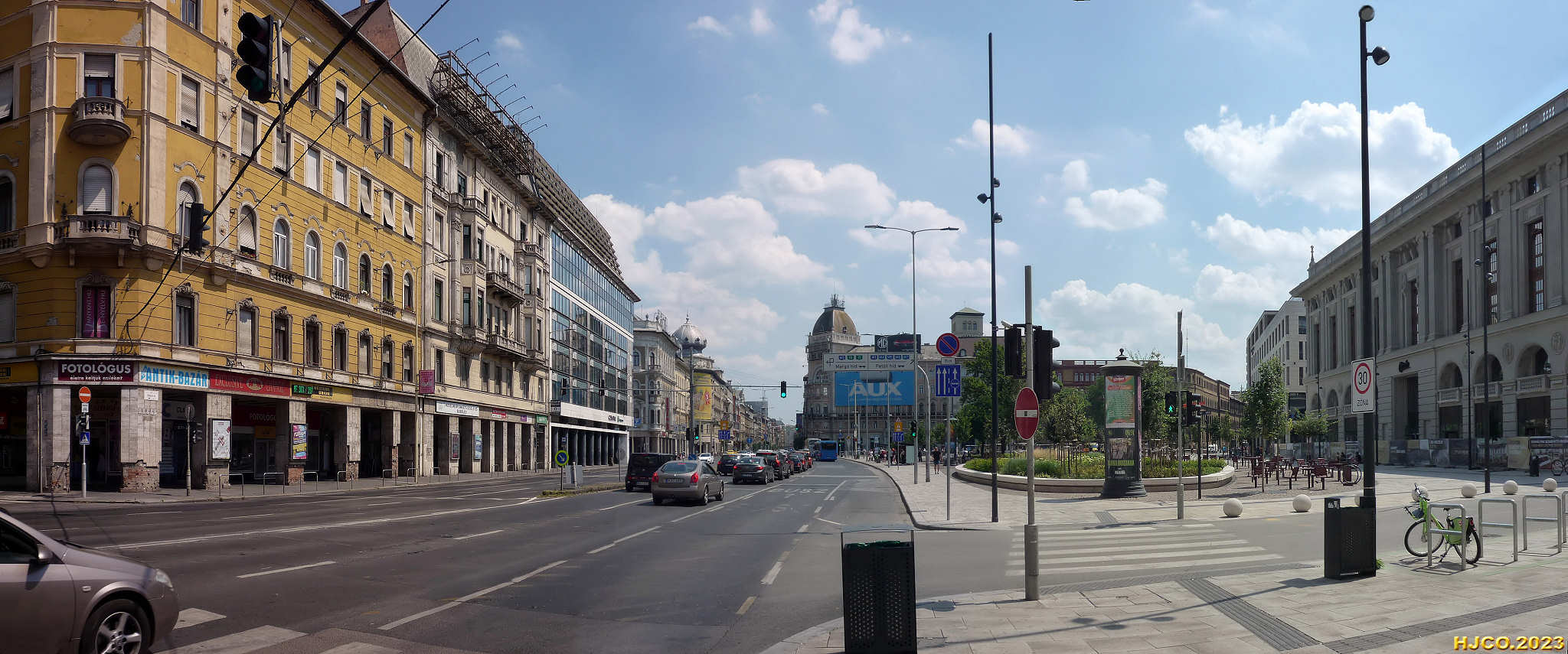 4. Panorâmica da rua Rákóczi, onde fica o hotel. Clicar para ampliar e explorar a imagem. A seguir, pormenores de alguns edifícios. (11:00)