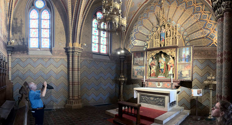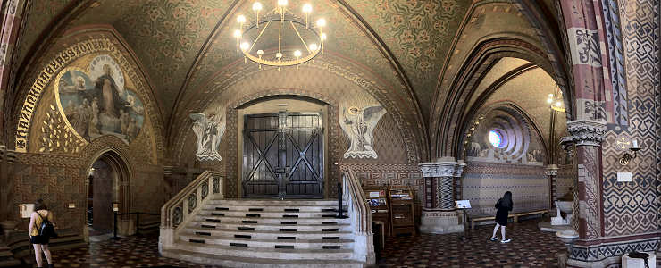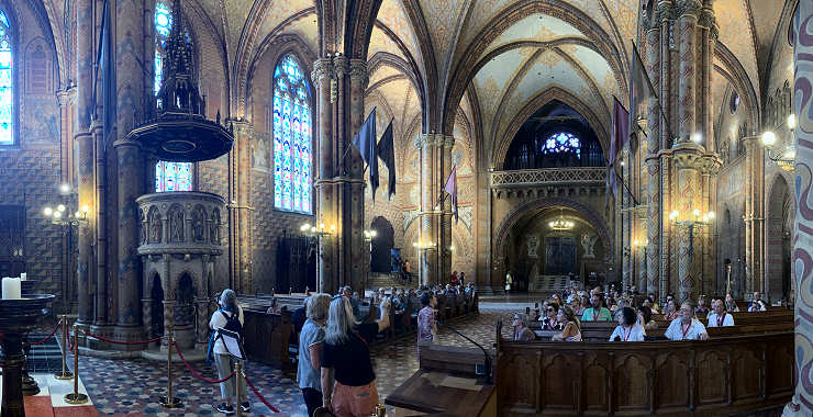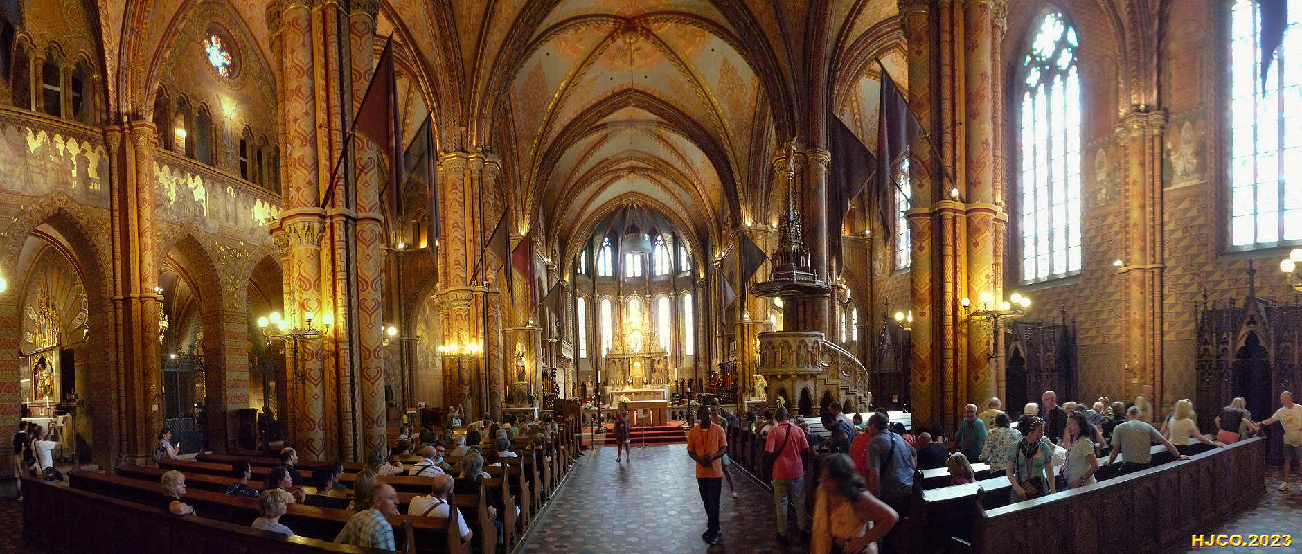 interior, a partir da porta principal para o altar.