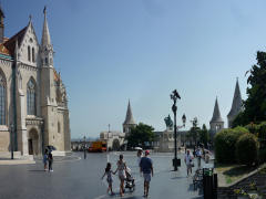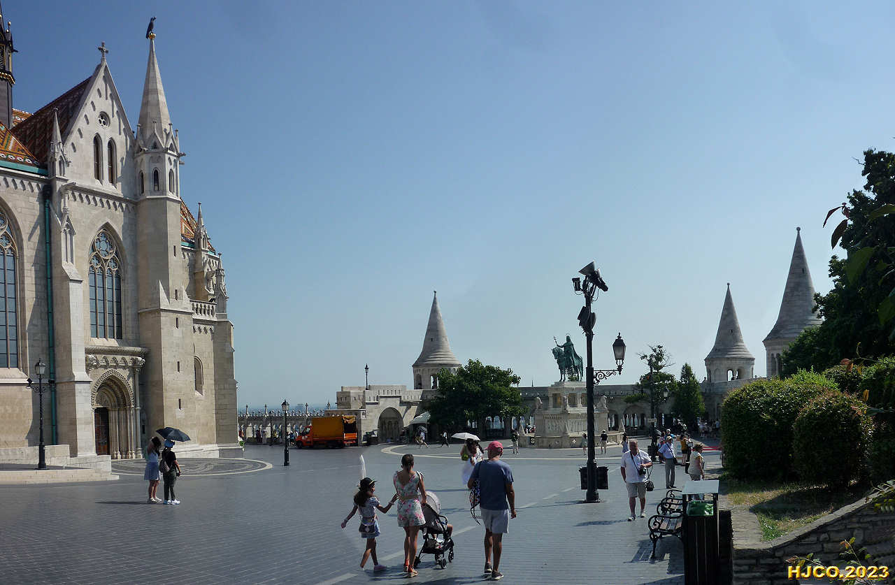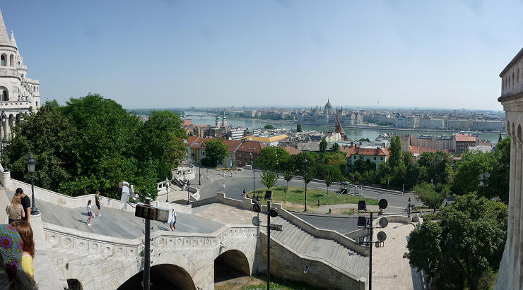 80. (10:30:38) - Panorâmica de Budapeste, vendo-se a escadaria que leva à base do Castelo de Buda.