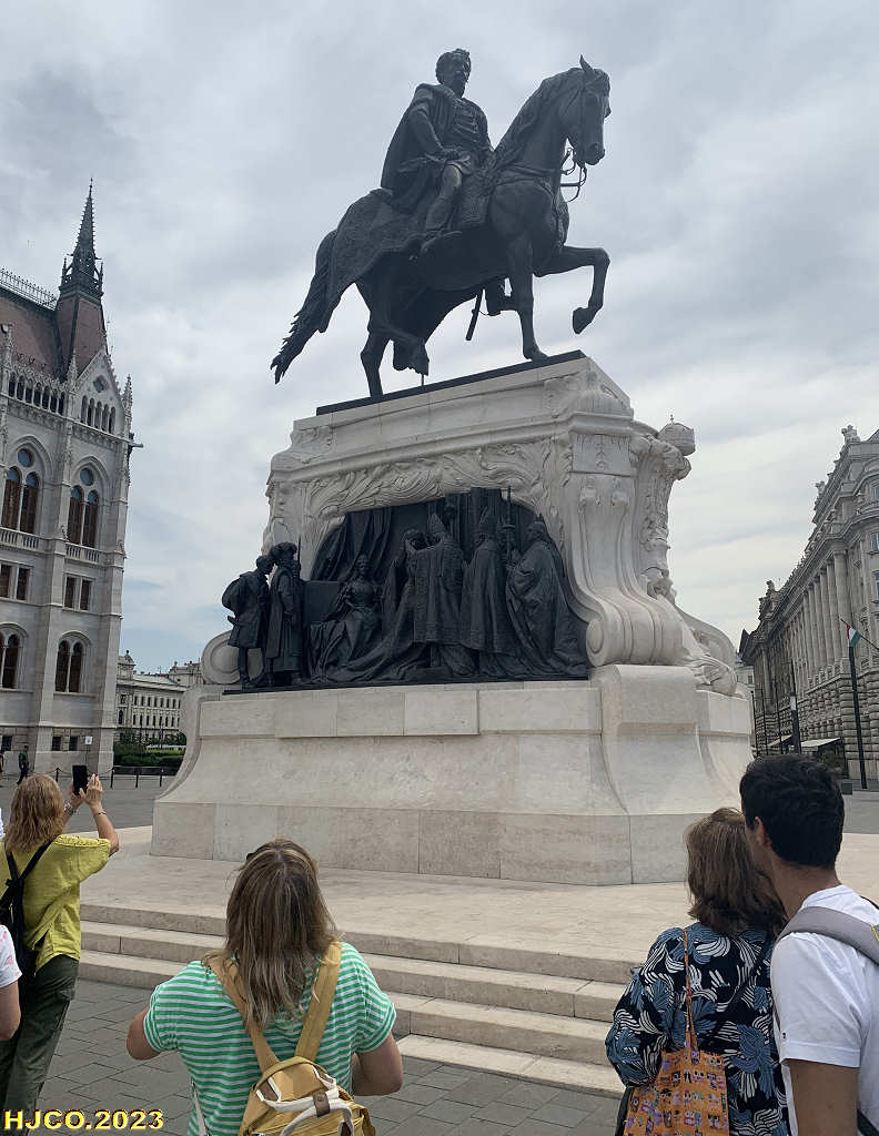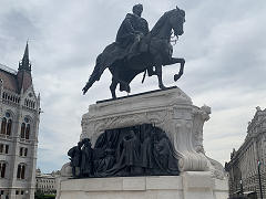 67. (10:38:46) Estátua de Gyula Andrassi, perto do Parlamento, em cuja base...