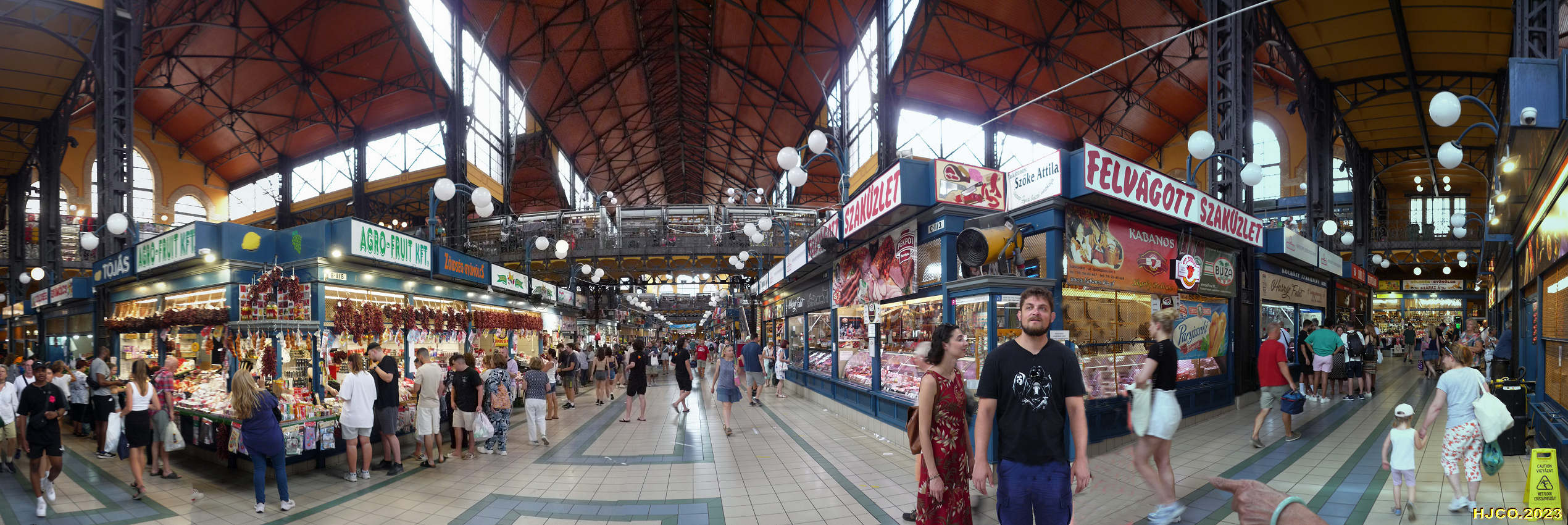 Panorâmica do Mercado de Budapeste a partir da porta de entrada.