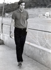 29.Posando para a foto, indiferente ao jogo de futebol.