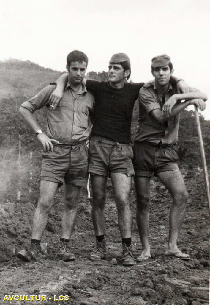 73. Durante a construção da pista de aviação. Da esq. > dtª: Neves, Laudelino e Leitão.