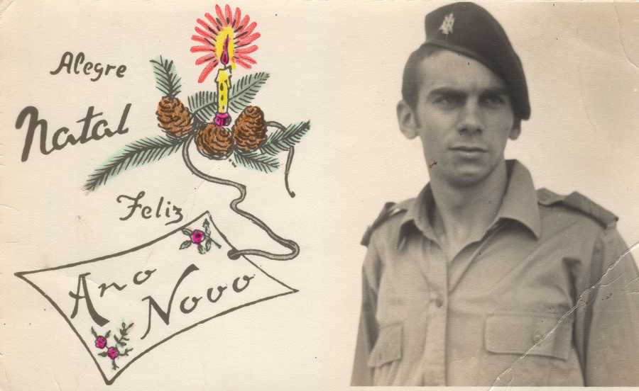 61 - Quiquiemba,  Jan. 1972.  Cabo Padeiro com a Lavadeira e filho (da lavadeira). 62 - Quixico Dez.1971. Postal de Boas Festas, existente em zona de combate. Dim. 12,6x8,6 cm. 63 - Em Luanda,  Janeiro 1973. À esq. 1º Cabo Cripto Silva Henriques; à dtª o 1º Cabo Padeiro Mário Silva.