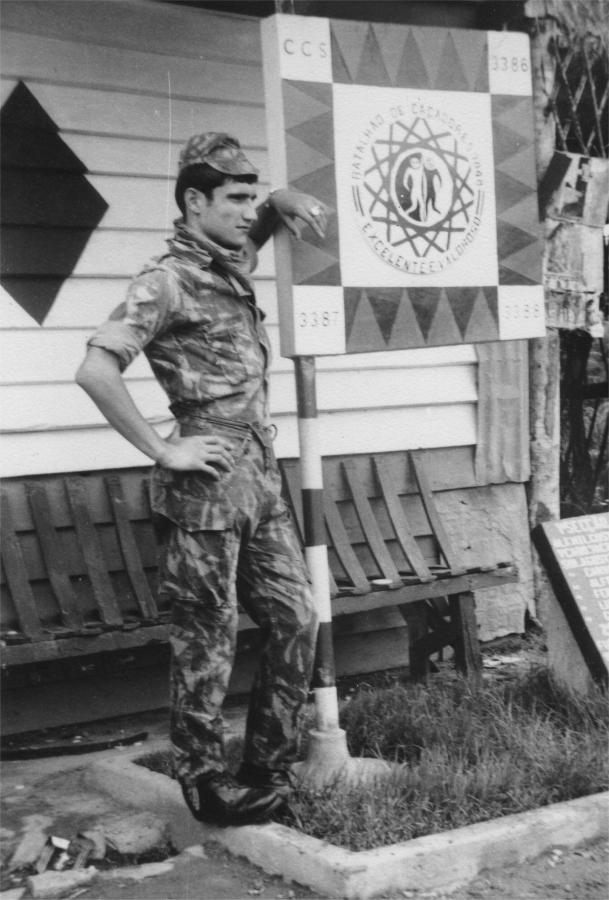 João O. Sousa na Beira Baixa, em  1972, junto do monumento do Batalhão de Caç. 3848.