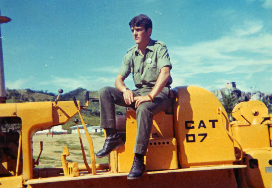 125. Laudelino Costa Silva (mecânico) da C. Caç. 3387 na máquina que ajudou a abrir a nova pista de aviação, inaugurada a 16-08-1972.