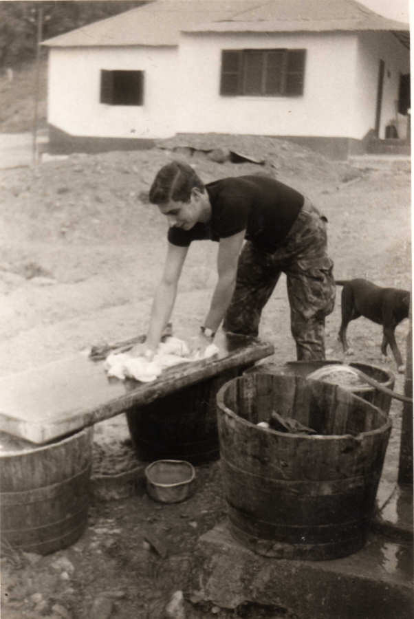 139.  Quixico 1972 Adílio Galhano Eva a lavar a roupa no chafariz da padaria. Ao fundo messe dos oficiais.
