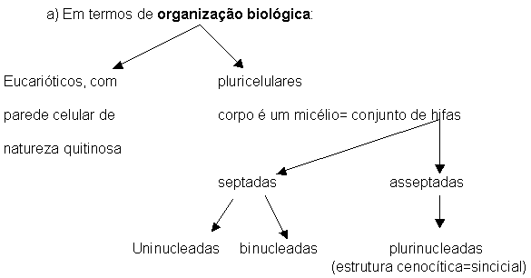 Classifique as hifas A, B e C tendo em conta a organização