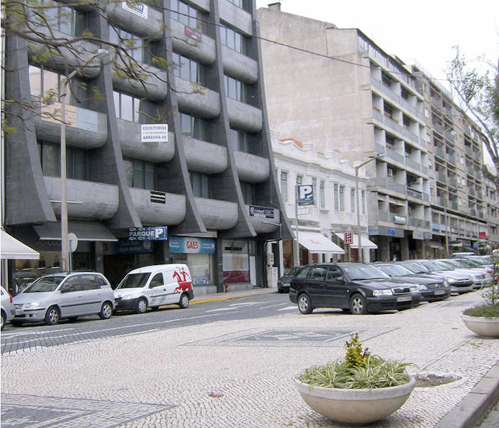 tabuleta escrita em “pretuguês”; ao Norte, o Correio com a sua inebriante