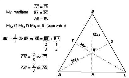 dista dois terços do vértice da mediana correspondente (Teorema de