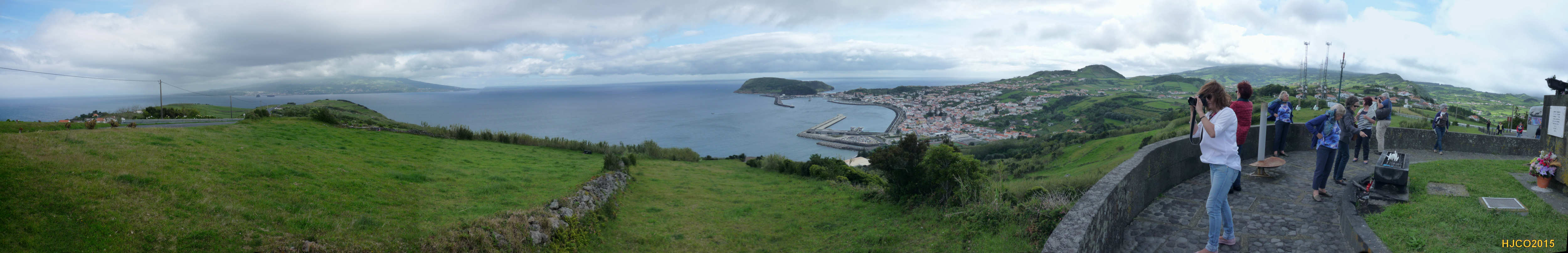 panorâmica, vendo-se ao fundo a cidade da Horta (Faial, Açores) –