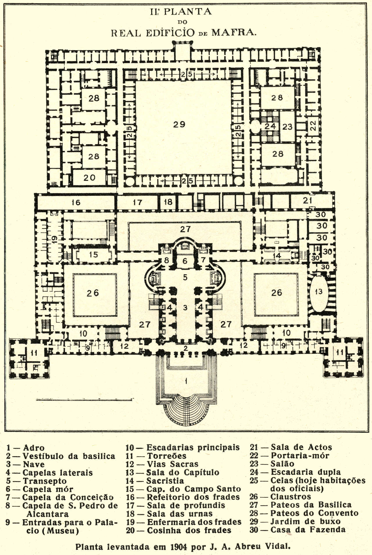 Planta do Real Edifício de Mafra, levantada por J. A. Abreu Vidal em
