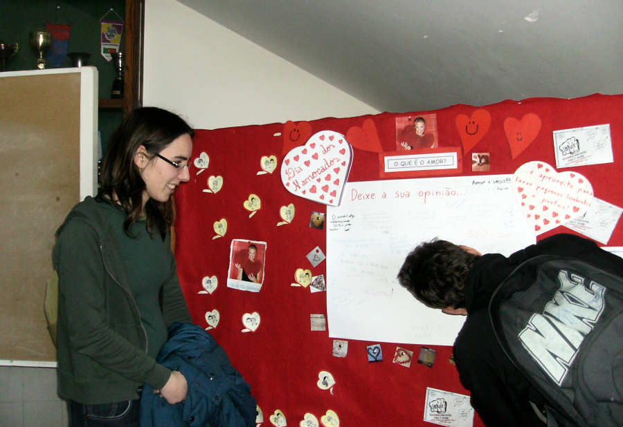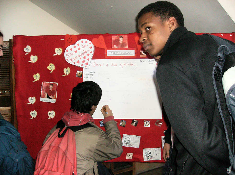 Para comemoração do Dia dos Namorados, foi criado um painel decorado pela aluna Mari Franciele Janke, do 12º K, com a colaboração do aluno Marcos Ribeiro, do 10º E.