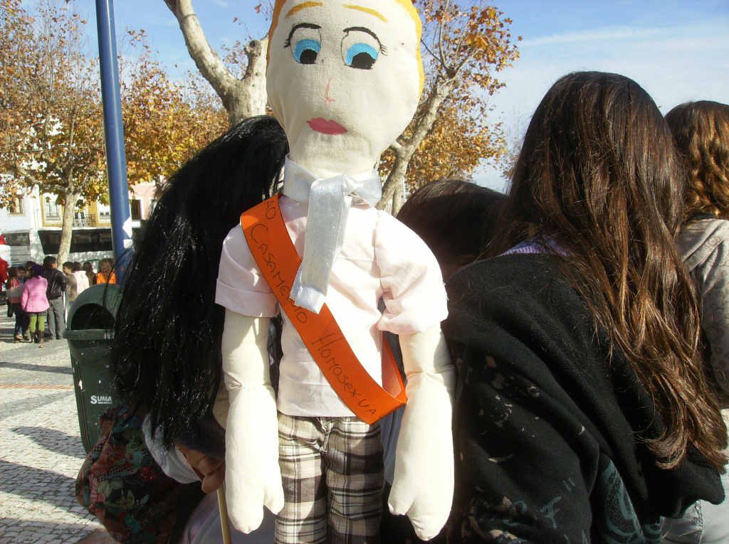 redigidos: «Direito ao casamento homossexual»; «Não à