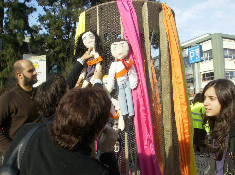 Os bonecos foram colocados no “Totem dos Direitos