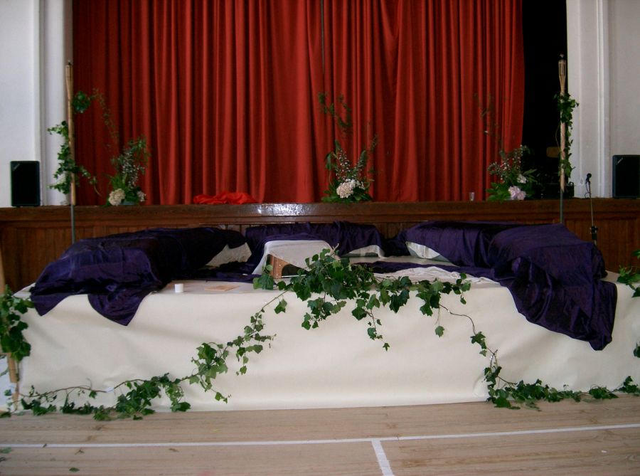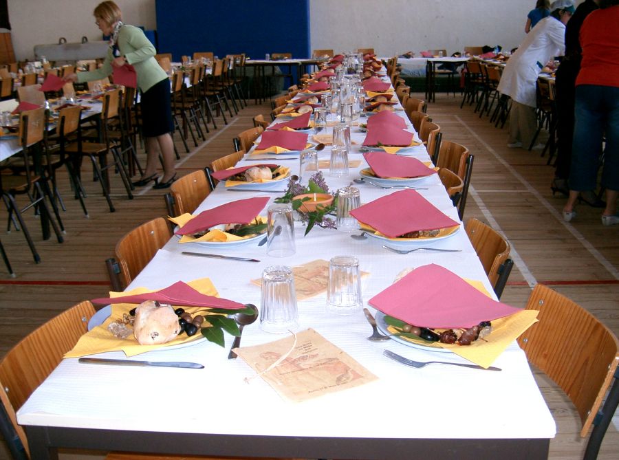 | Jantar romano: imagens de Marisa e Joana. - Arranjo da sala e... decurso do mesmo.